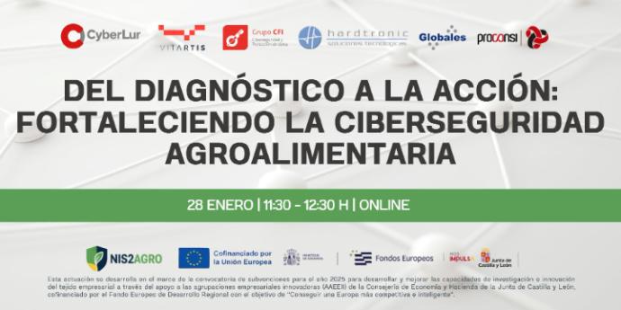El próximo miércoles 28 de enero a las 11:30h se celebrará el segundo seminario online del proyecto NIS2AGRO; una iniciativa conjunta entre CyberLur, Vitartis, Grupo CFI, Hardtronic, Soluciones Informáticas Globales y Proconsi para fortalecer la ciberseguridad en el sector agroalimentario de Castilla y León.